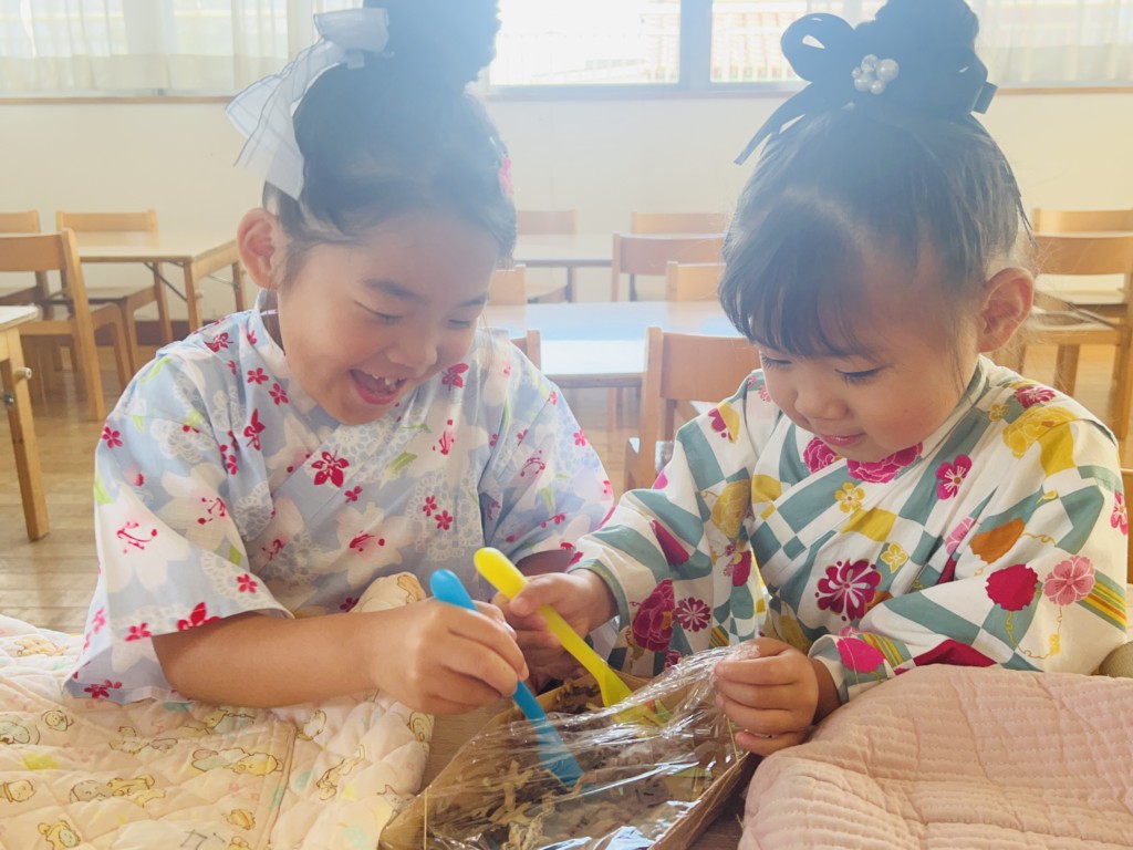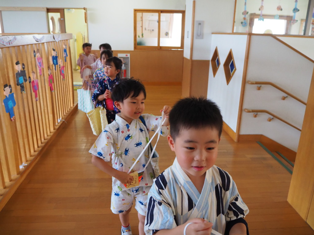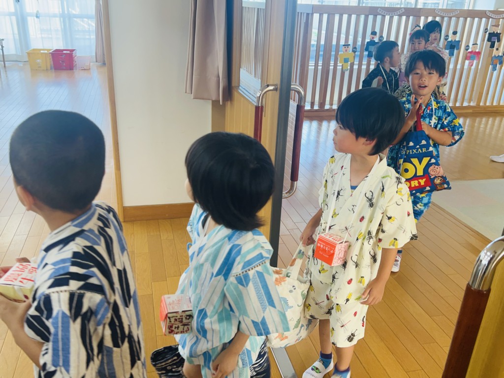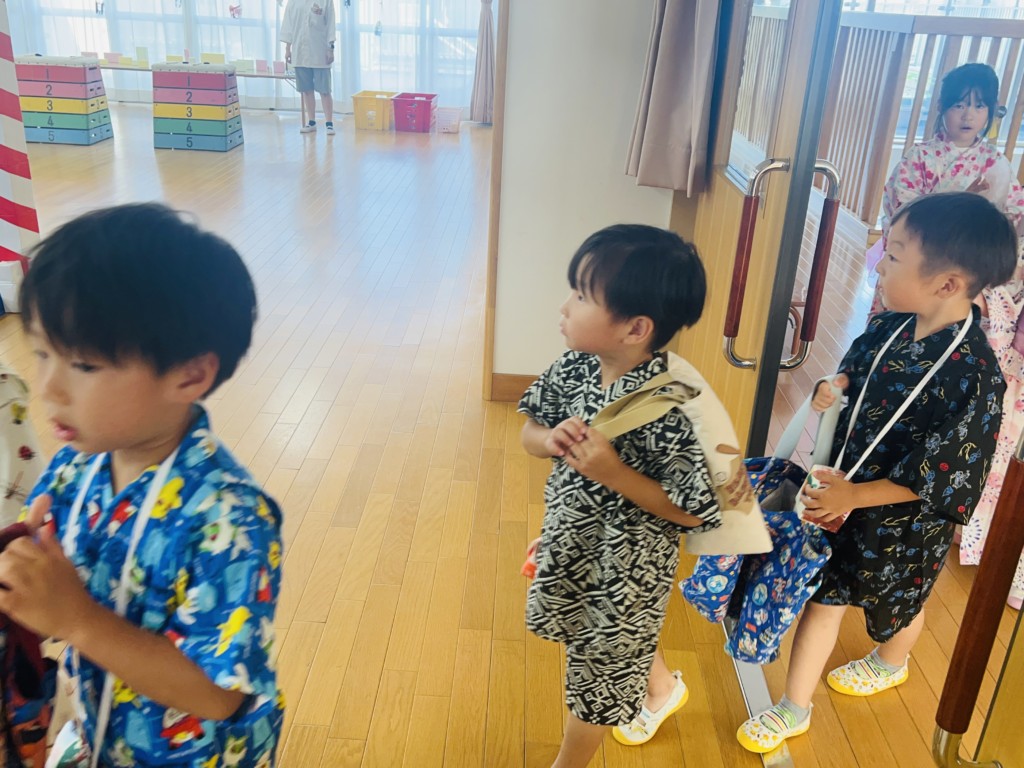 素敵な浴衣、甚兵衛姿でとっても嬉しそうに登園してきた子どもたち🥰
