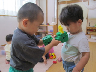 玩具を組み合わせて工夫して遊ぶ姿も見られます。
