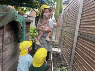園庭遊びでは夏ならではのものをたくさん見つけました。