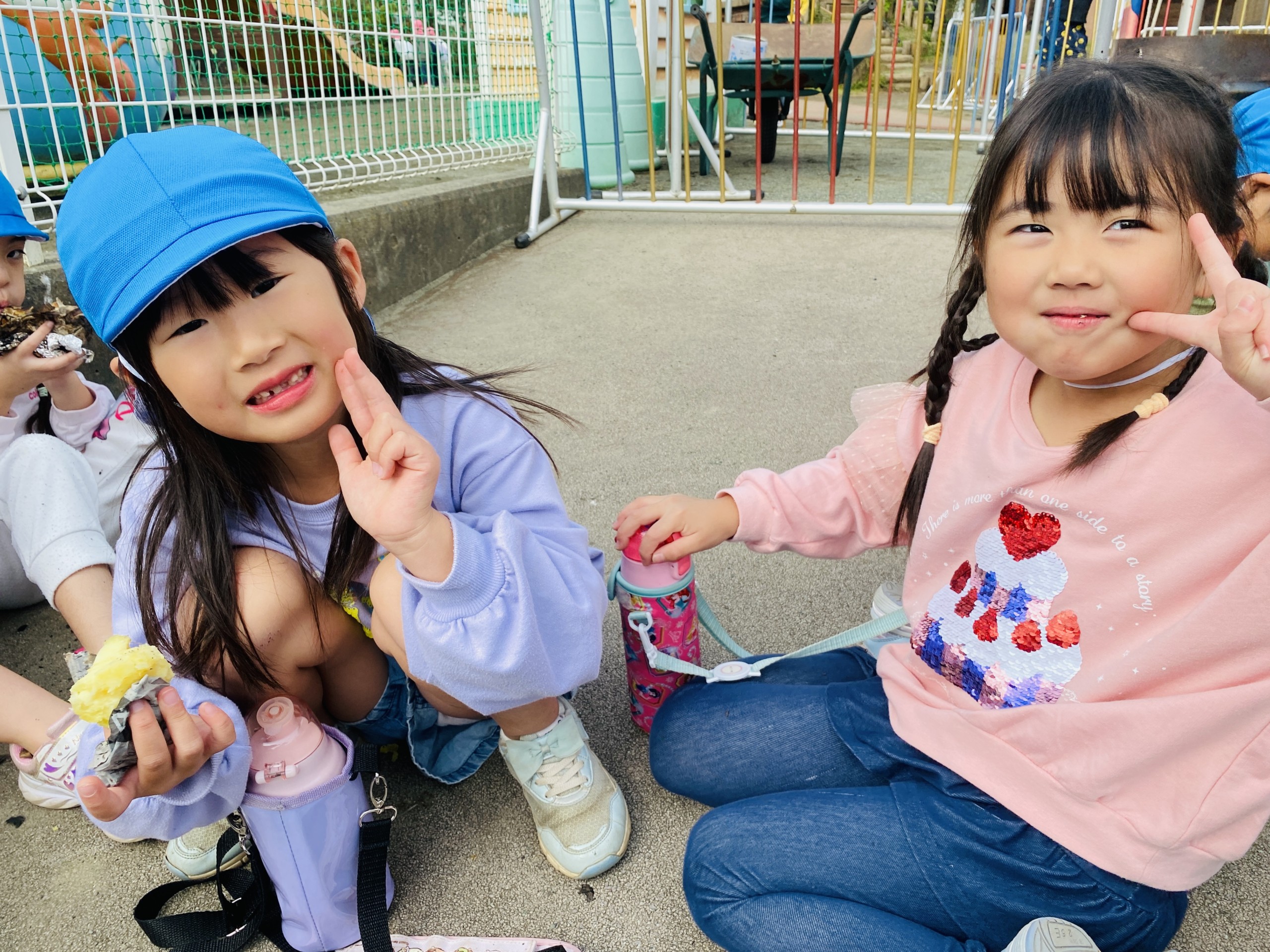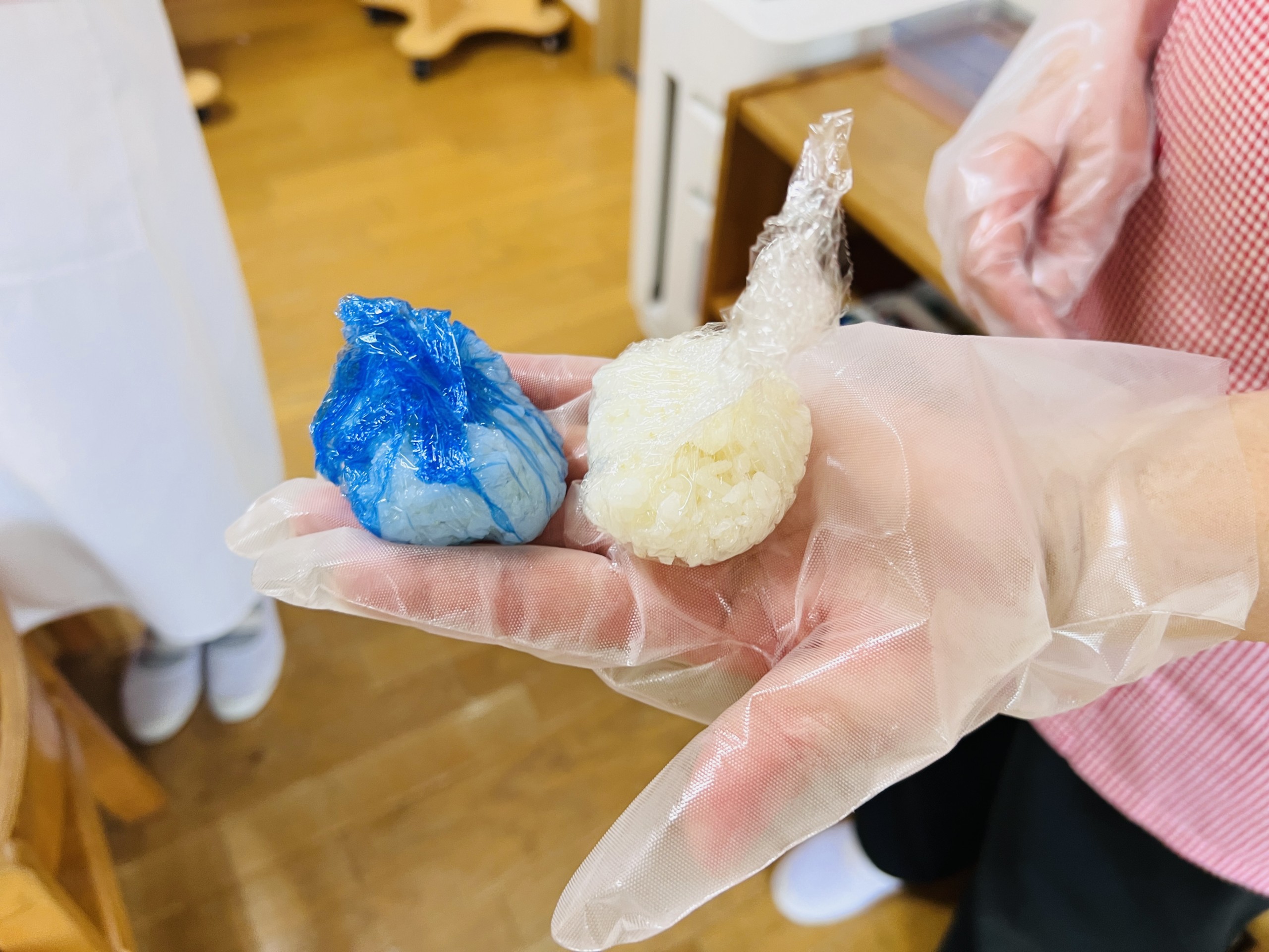 三角握りは少し難しそうでしたが、自分で握ったおにぎりを見て嬉しそうな子どもたち😚