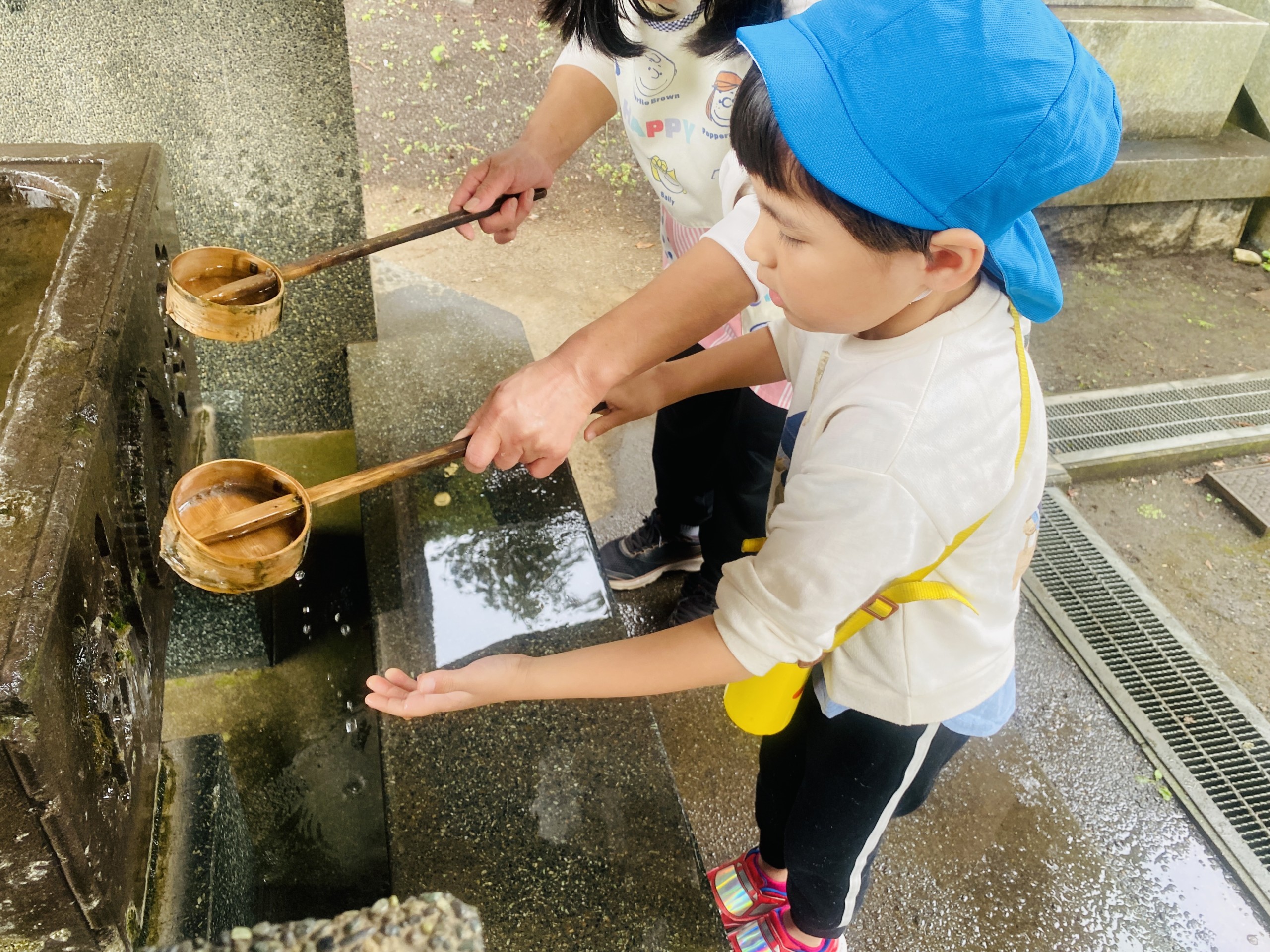 かすみ台第一保育園のみんなが元気に過ごせるよう、ぞう組が代表して春日神社へ参拝に行きました。