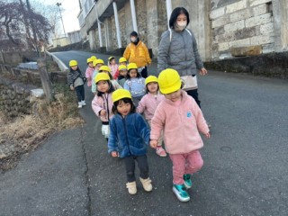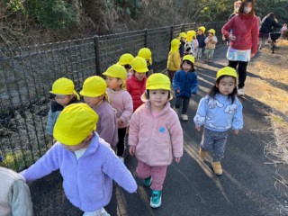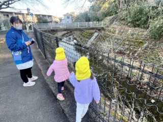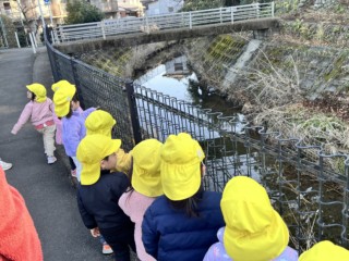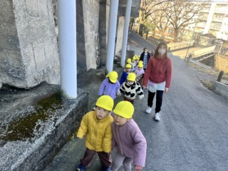 お散歩スポットは川沿いの遊歩道。坂道もお友達と手を繋いで上手に歩くことができました。