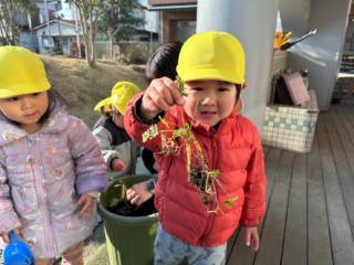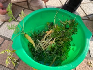 収穫したその日に給食に出してもらい、「取った人参だ!」「もっと食べたい」と美味しそうに食べていました。