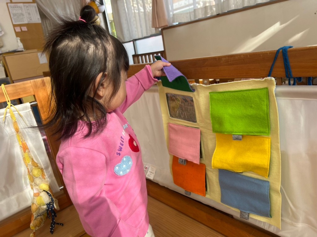 指先を使ったあそび、仕掛けのあるあそびなどくり返し楽しみ、達成感を味わうことができています。