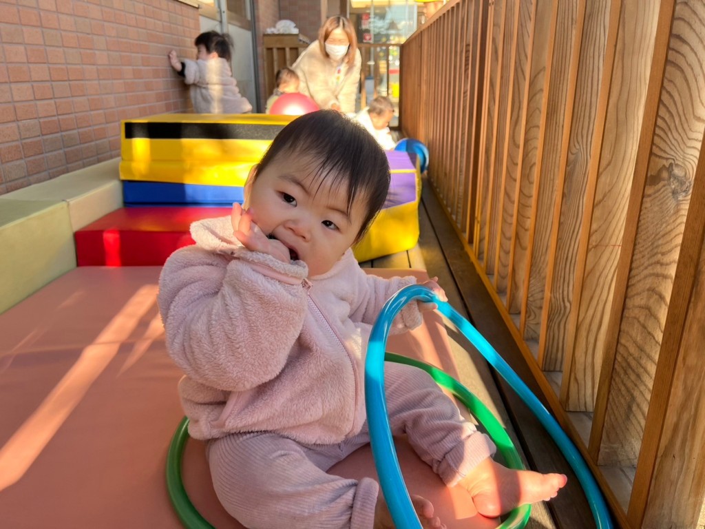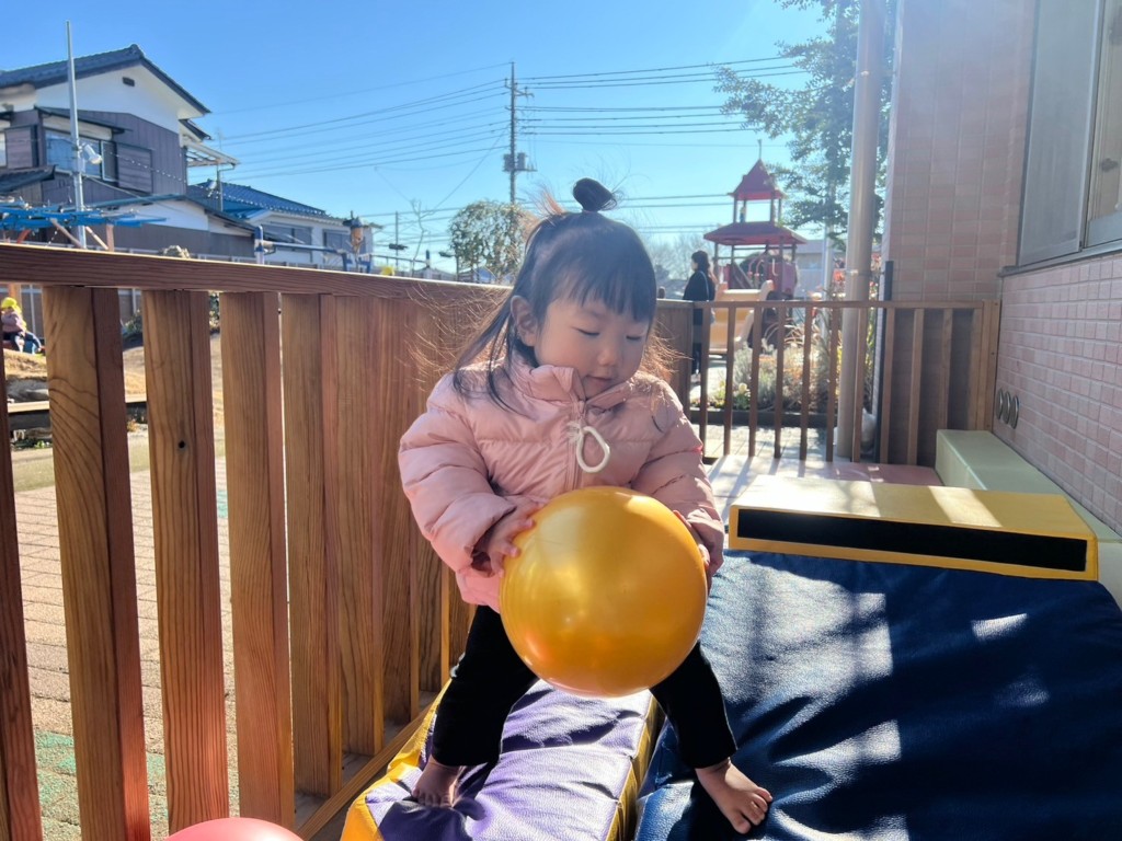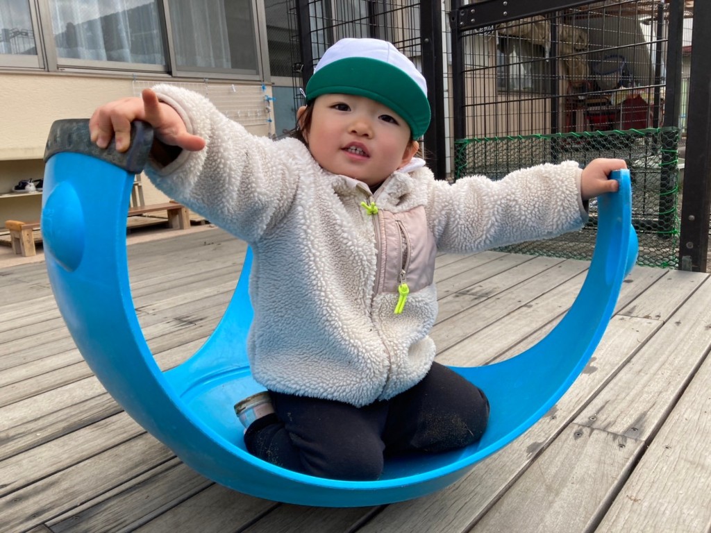 コアラというなまえの遊具を使った遊びがお気に入りです。登ったり揺れたりと様々なあそびができます。