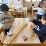 特に『おにはそと、ふくわうち』という紙芝居を気に入り、その話に登場する子どもたちのように「⚪︎⚪︎君のお腹の中には何鬼がいるかな?」「⚪︎⚪︎ちゃんのお腹は泣き虫鬼がいるかも!」などと自分のお腹にいる鬼を考えたり、友だちや保育者のお腹にいる鬼について話したりしました。