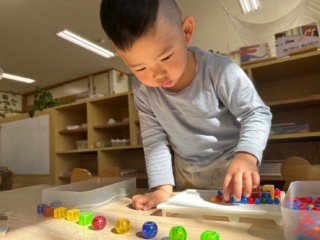 最近は影に興味を持つ子が出てきて・・・。自分の影・・・。日差しを浴びた玩具の色の付いた影・・・。様々な気付きに成長を感じます。