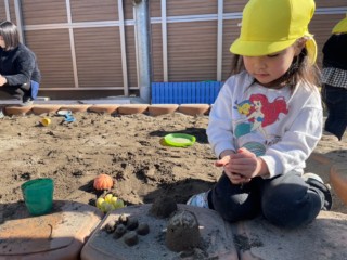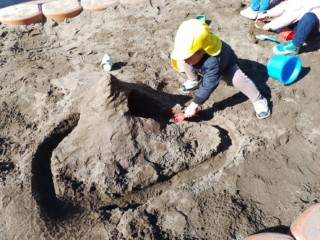 寒い中でも全力で楽しもうとする子ども達は、気持ちも高まり・・・「上着脱いでくる~」と上着を玄関に置きに行くほど体も温まっています。