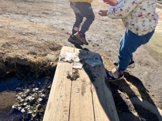 身体もたくましくなり、子ども達の遊びはよりわんぱくに・・・!寒いこの季節、園庭ではビオトープに枝を置いて、氷柱ができるのを皆で楽しんでいます。