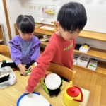 友だちと同じものを作ったり、協力してひとつのものを作ろうとしたり…進級して友だちへの思いがより深まってきたように感じています☺️