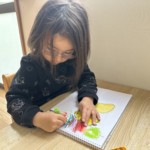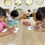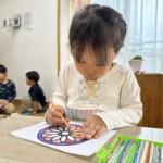 曼荼羅の塗り絵は色鉛筆で時間をかけて丁寧に塗ったり、友だちや保育者と色合いを揃えて塗ることを楽しんでいます!