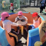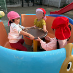 また、ぱんだ組さんと手を繋いで散策したり、回転遊具を力いっぱい回してあげたり、お兄さんお姉さんらしい姿も見られます。