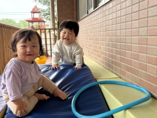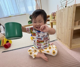 4月初めは泣き声がありましたが、今では沢山の笑顔に変わり、安心できる大人と一緒に毎日楽しく過ごしています。