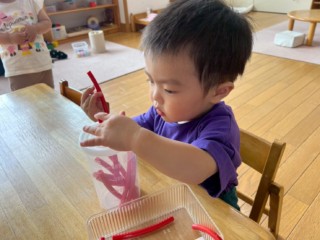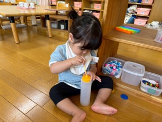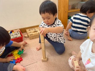 自分で出来ることが増え、玩具を選ぶとじっくり遊べるようになってきました。今まで積み木を少しだけしか積み上げられなかった子も何度も遊ぶうちにたくさん積み上げられるようになってきました。1つ積み上げるごとに拍手をして喜ぶ子どもたちの姿が見られ、私達も嬉しく思います。