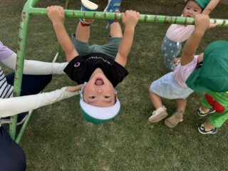 砂場玩具を使って遊んだり、鉄棒にぶら下がったりと遊び毎日楽しく過ごしています。
