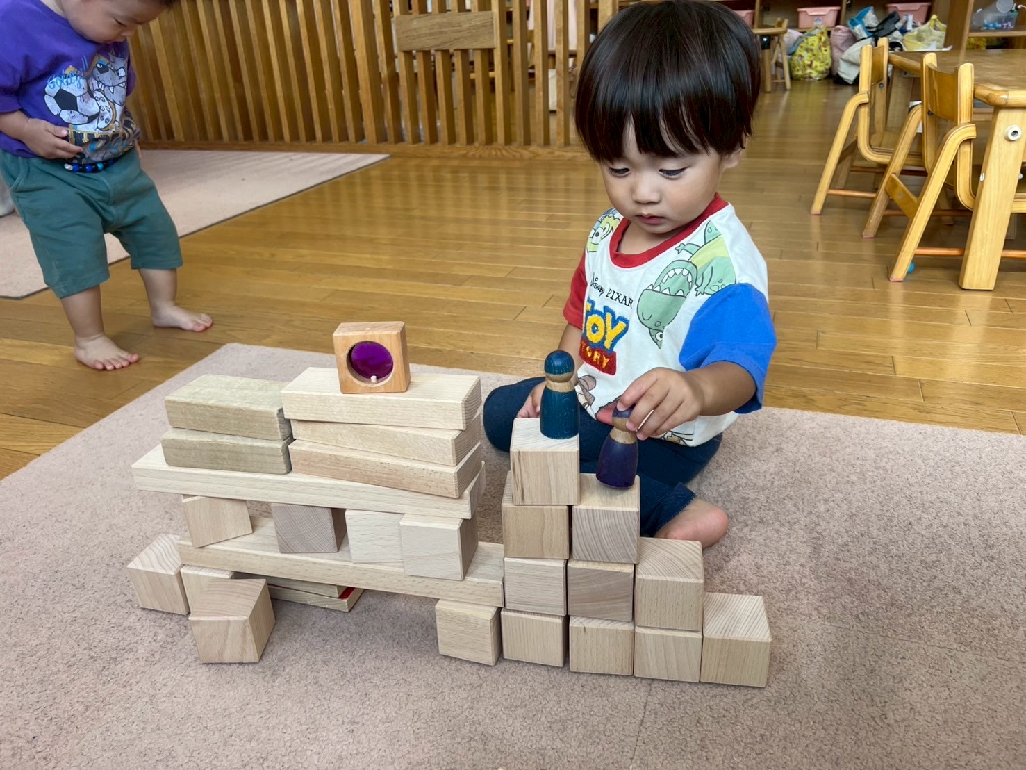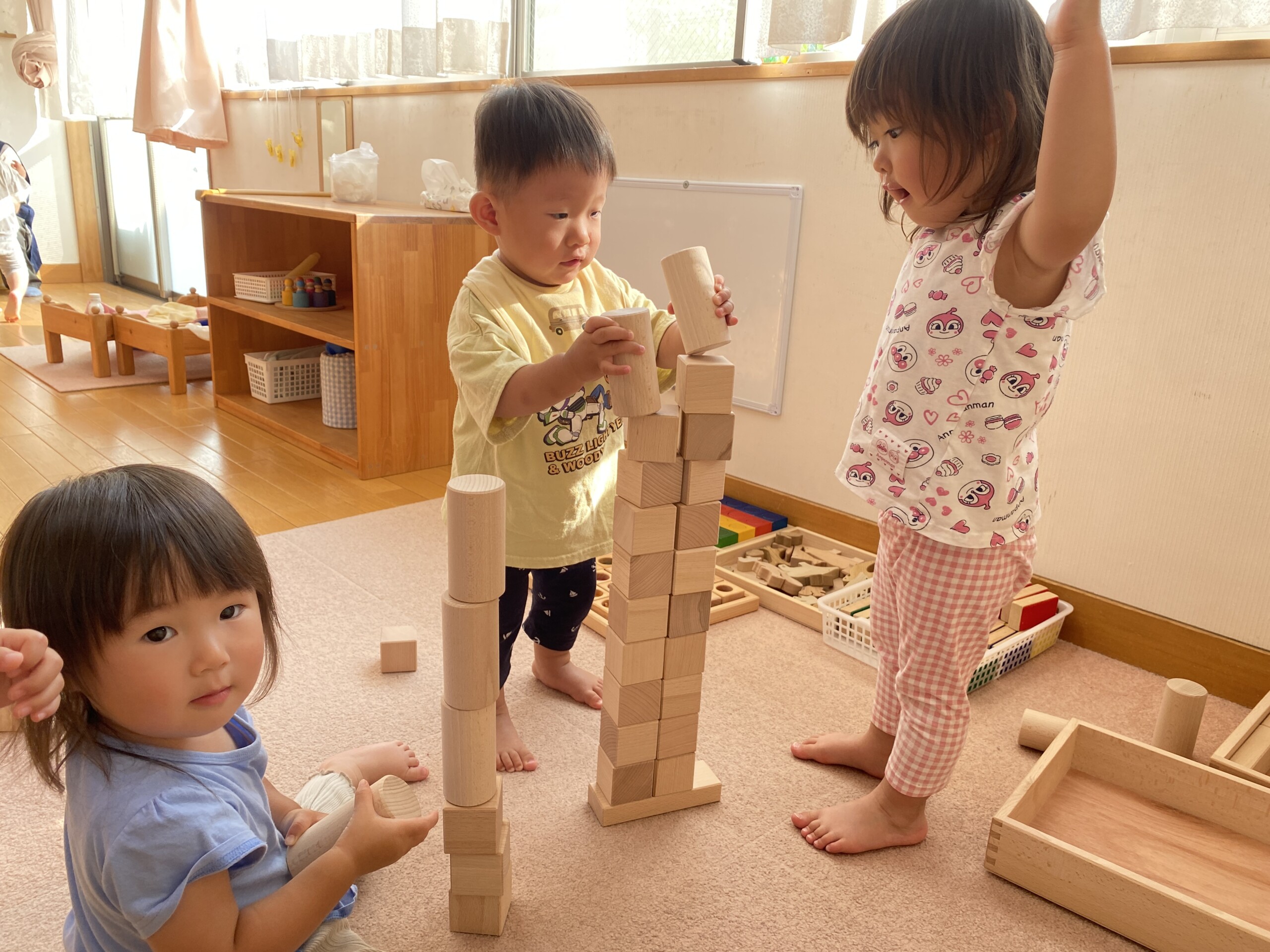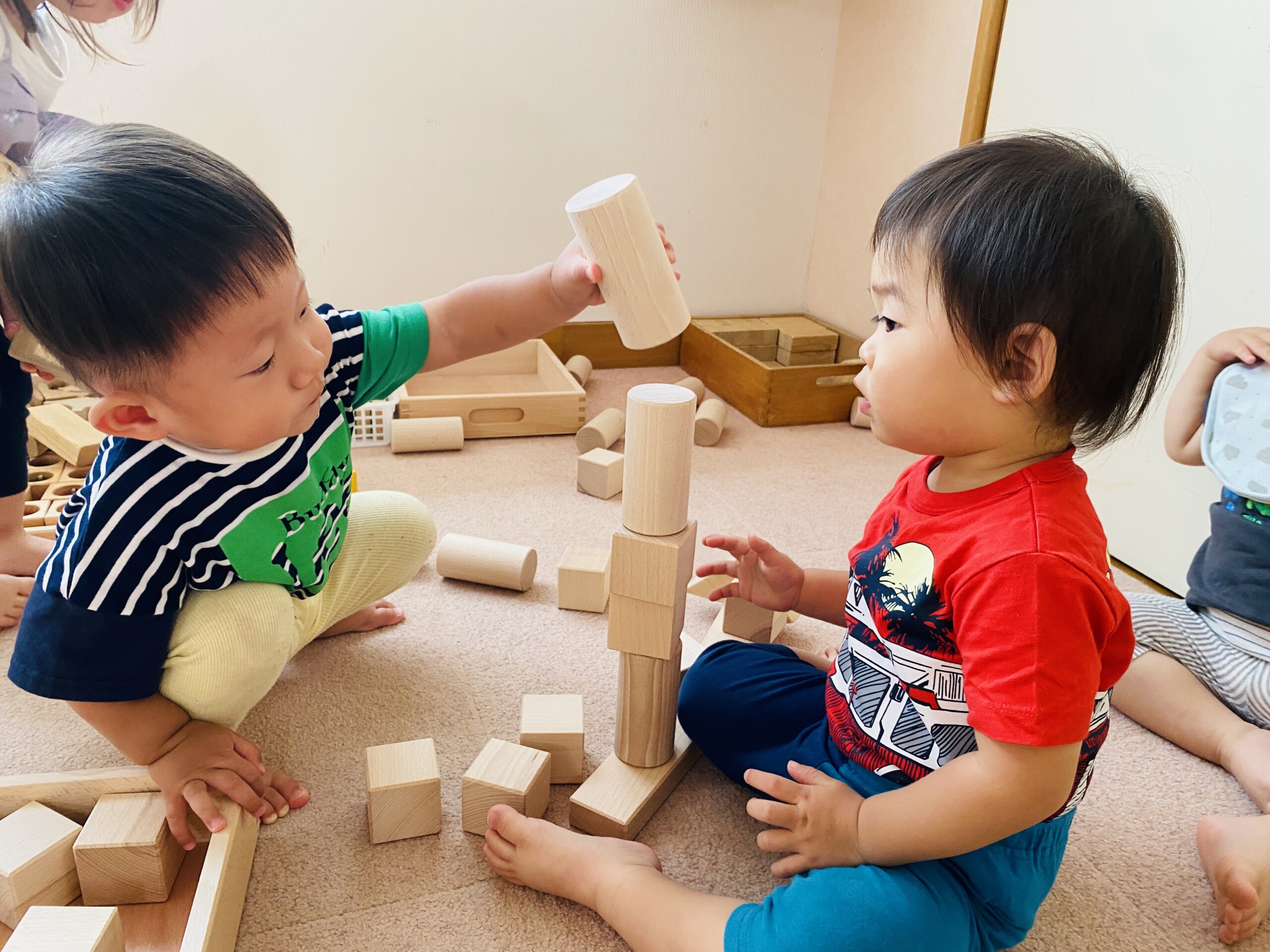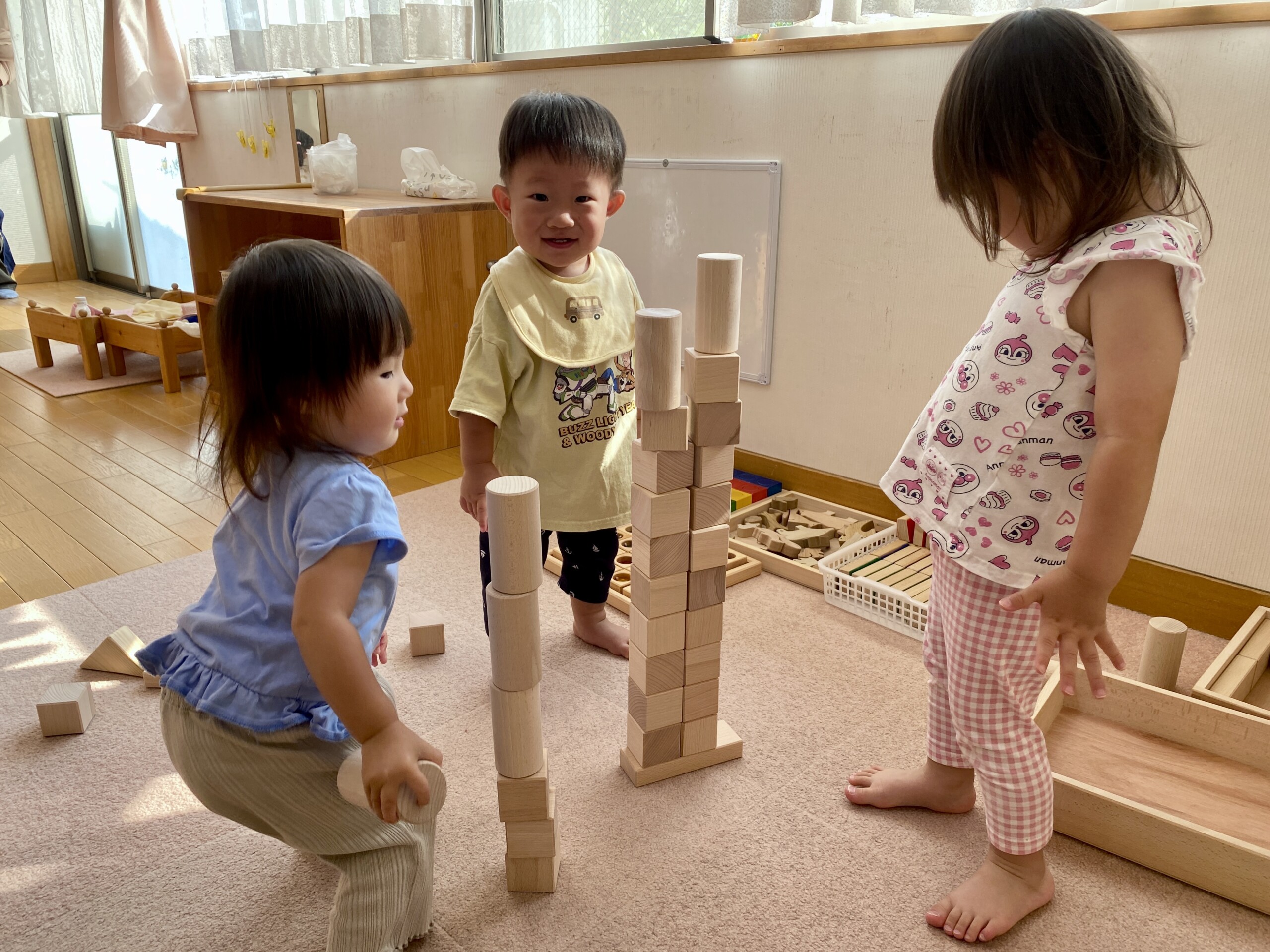 また、積み木を高く積めるようになってくると、自然と友達と一緒に遊ぶ機会が増えてきました。