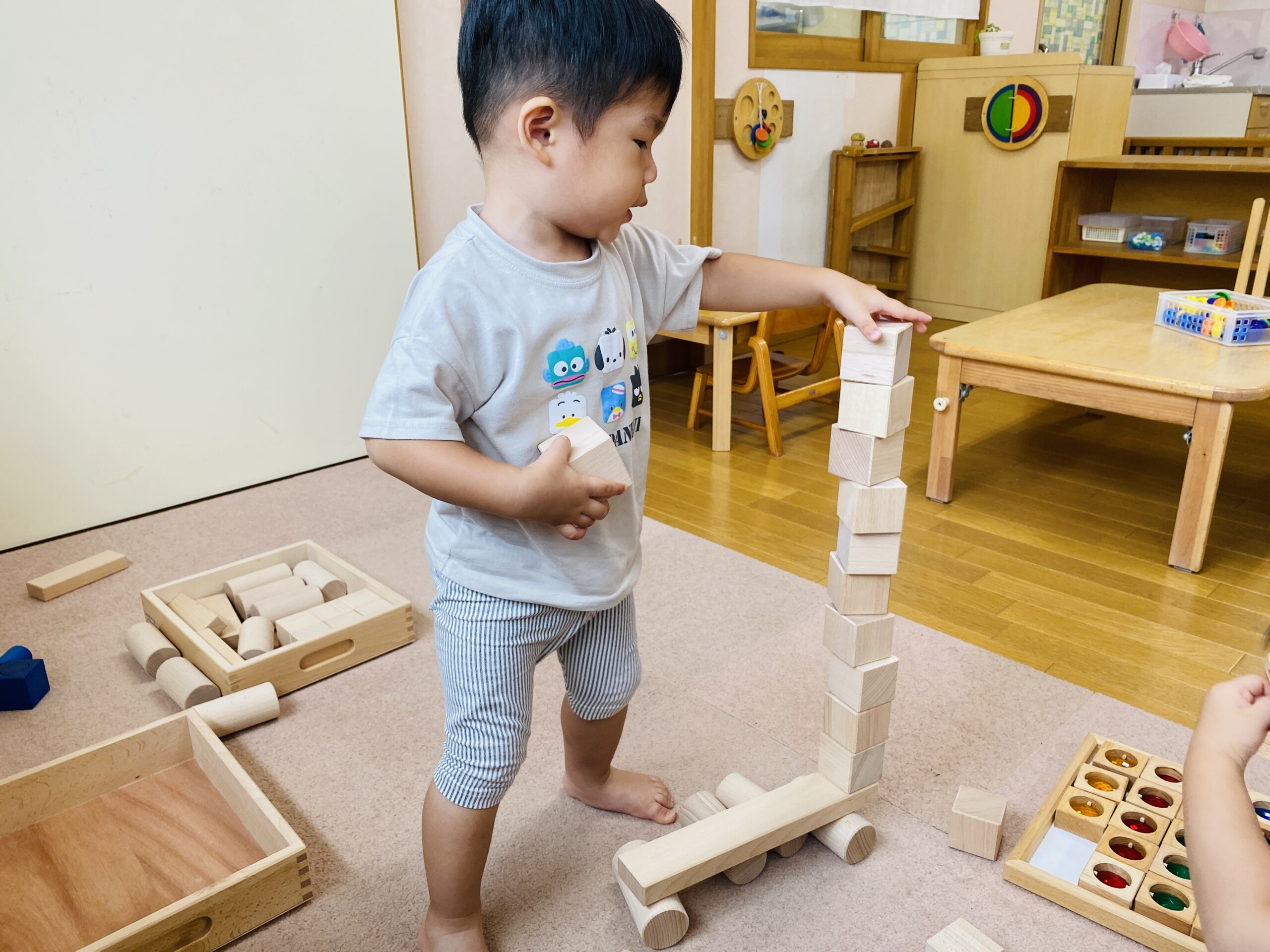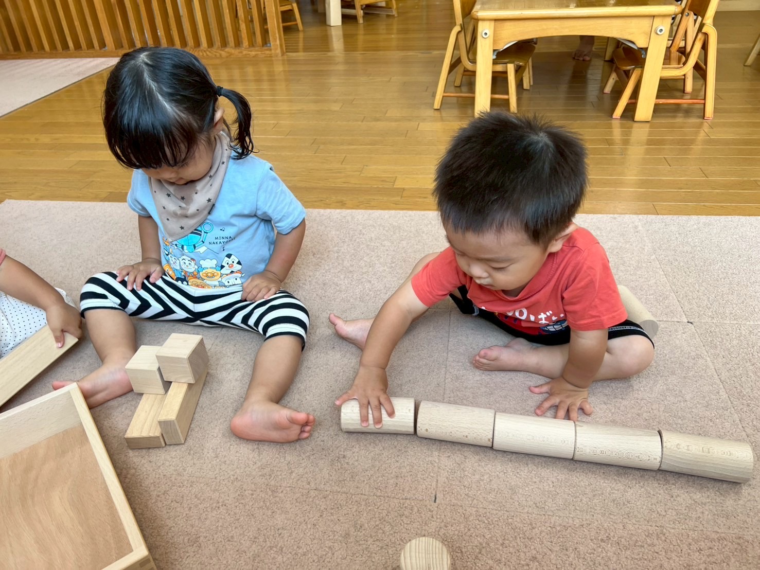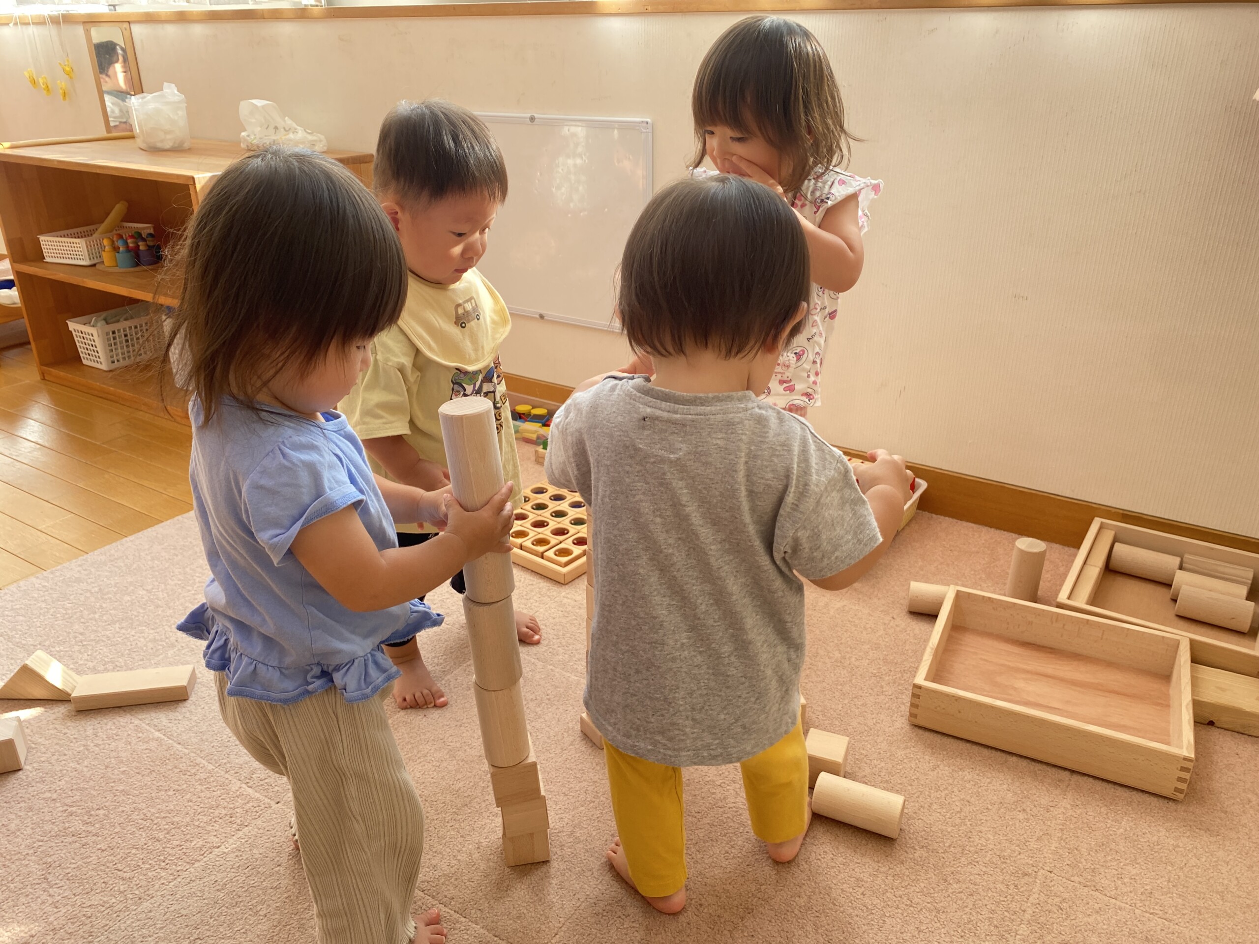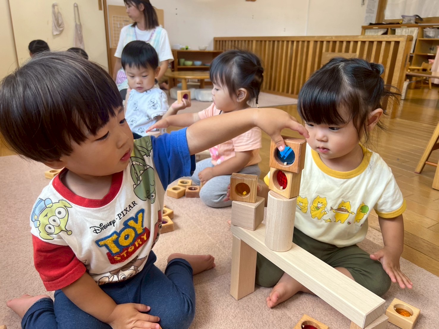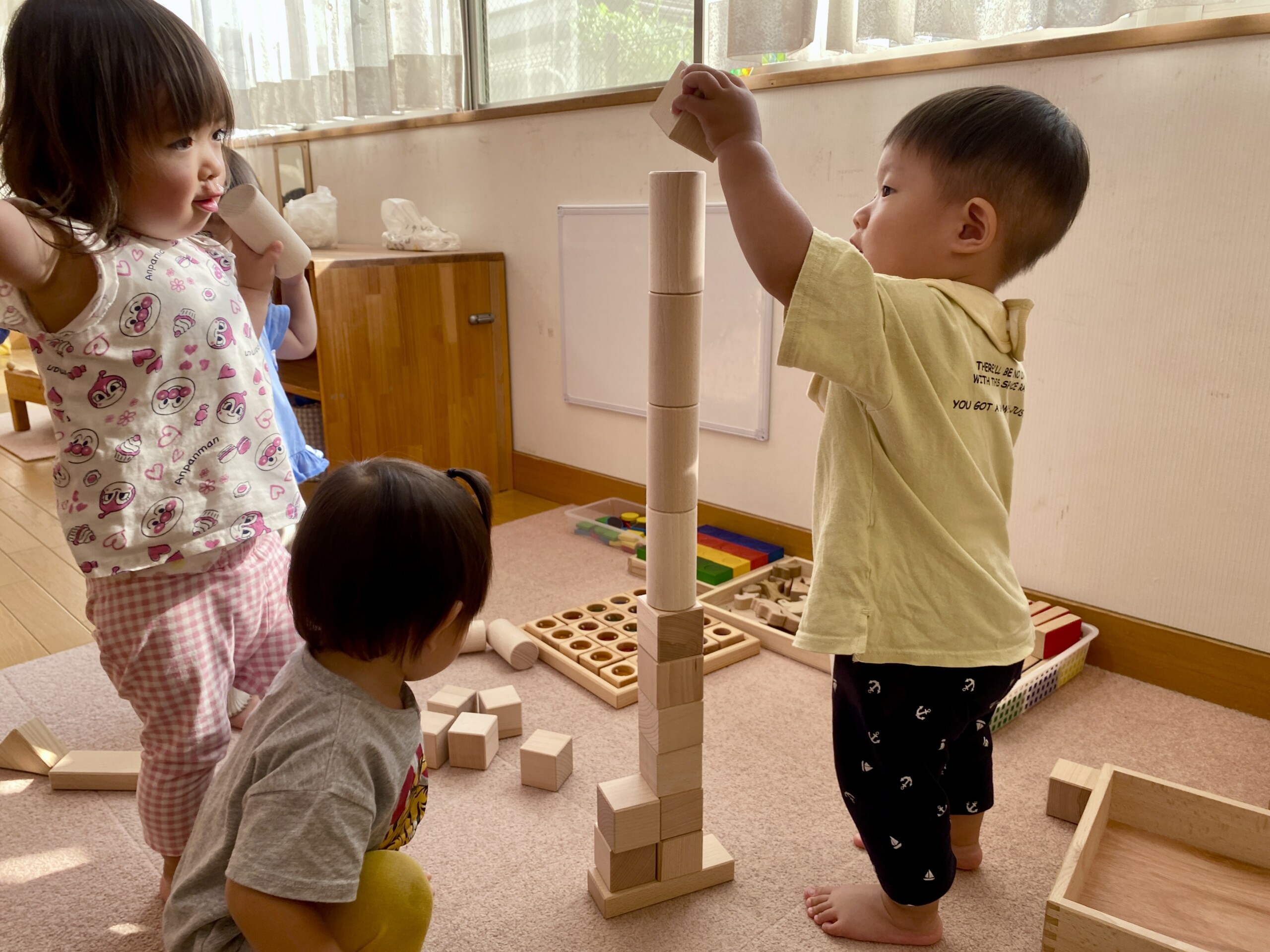 また、積み木を高く積めるようになってくると、自然と友達と一緒に遊ぶ機会が増えてきました。