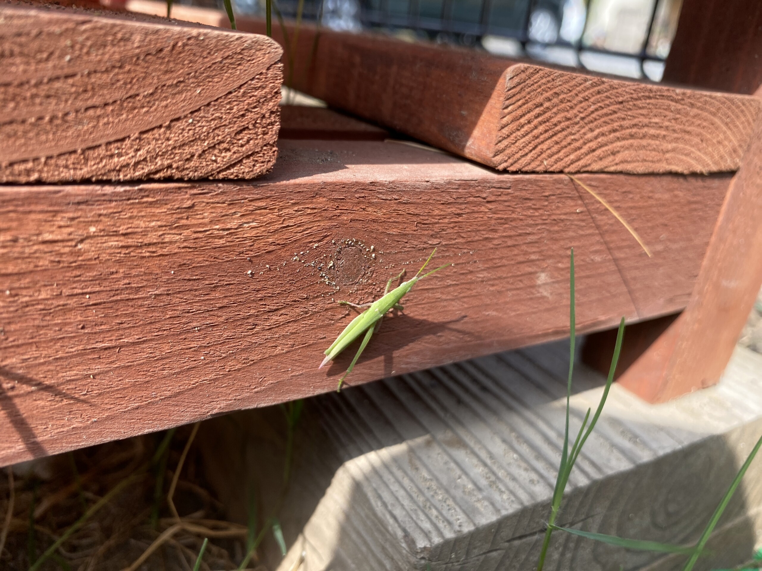 なかなか姿を見せないバッタは、芝生に紛れすぐに見失ってしまうので、「どこいった~?」と一生懸命探しています🔥