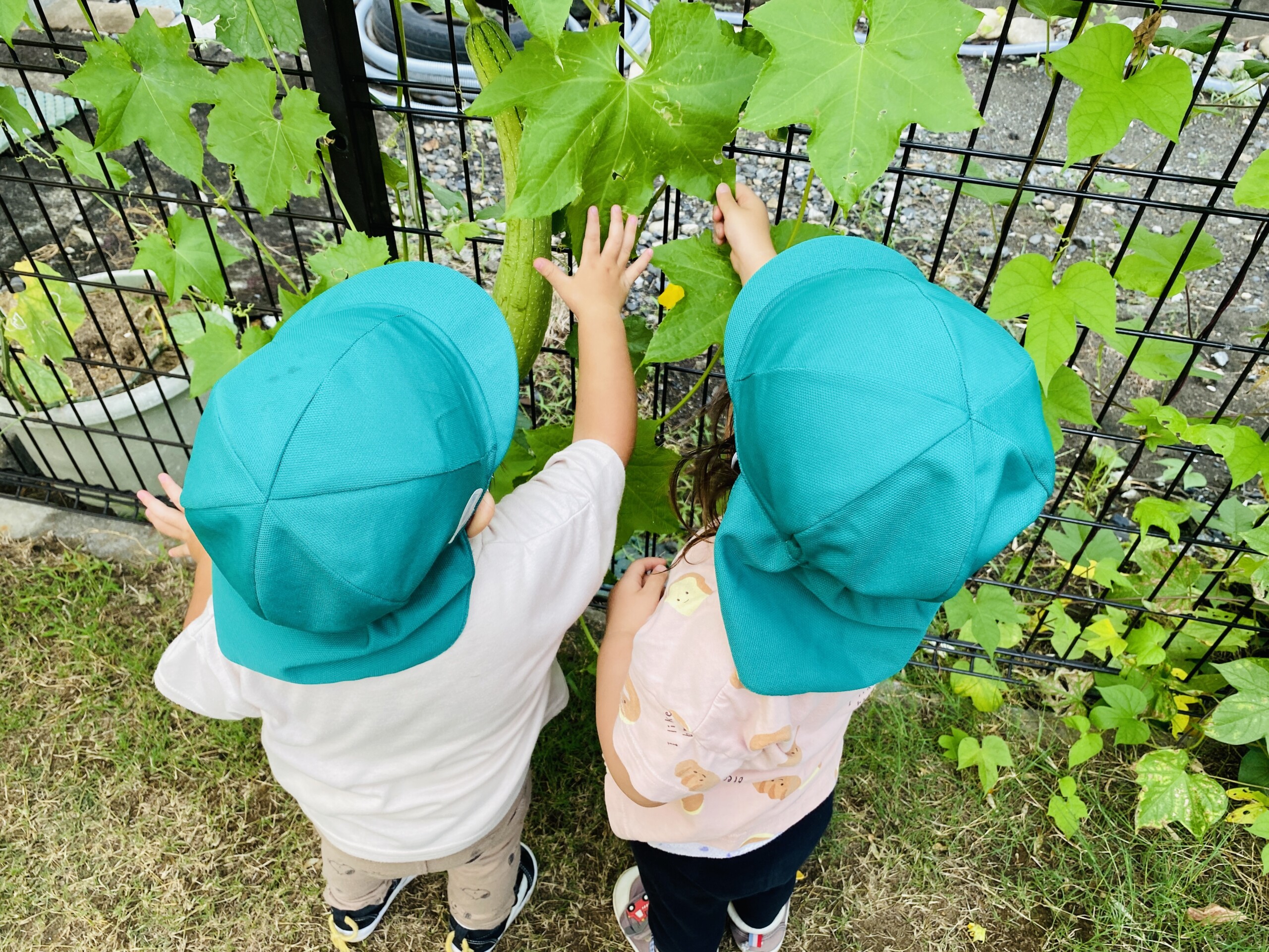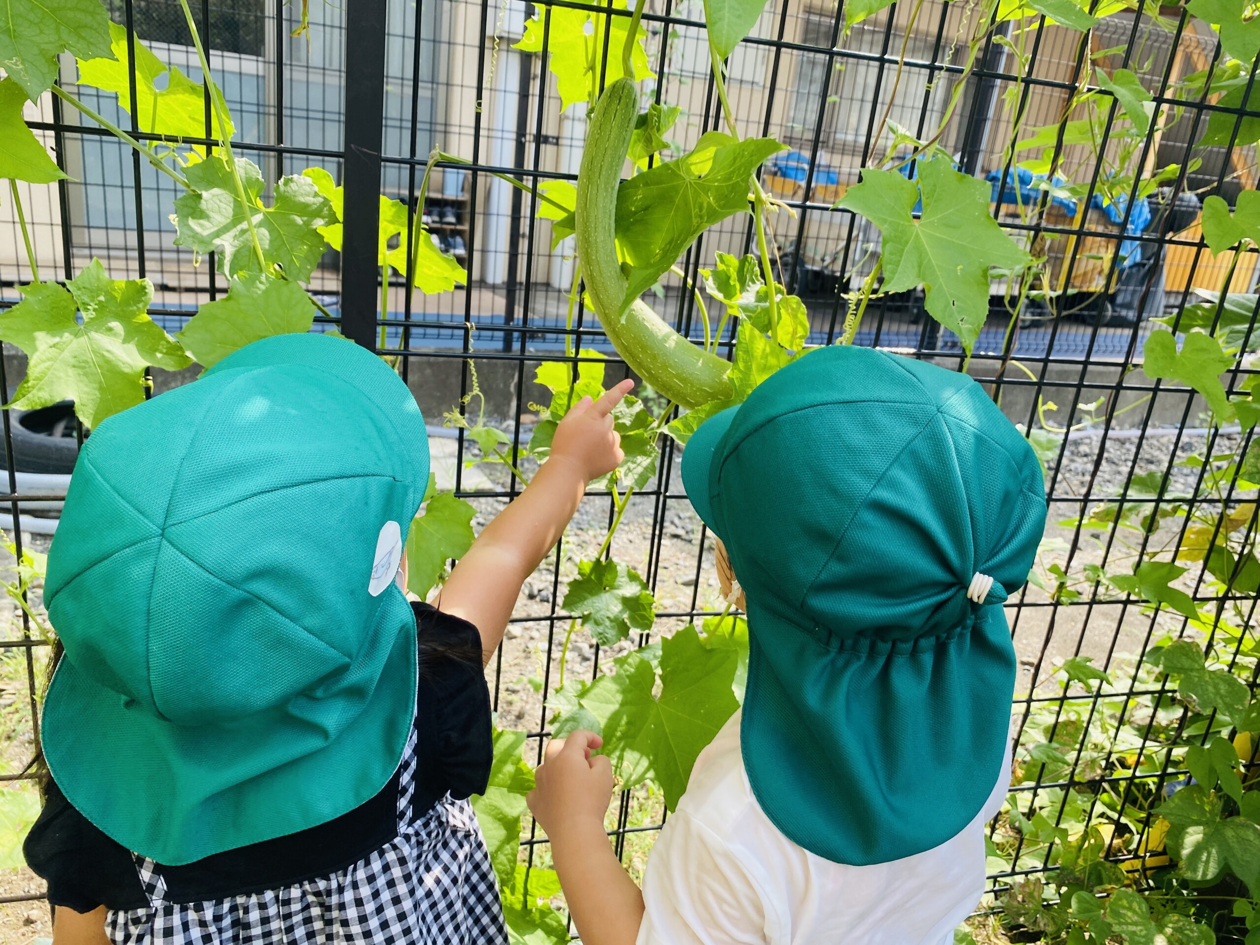 「きゅうりみたいだね」「ぼこぼこしてるね」と声を掛けながら観察を楽しみました🔍