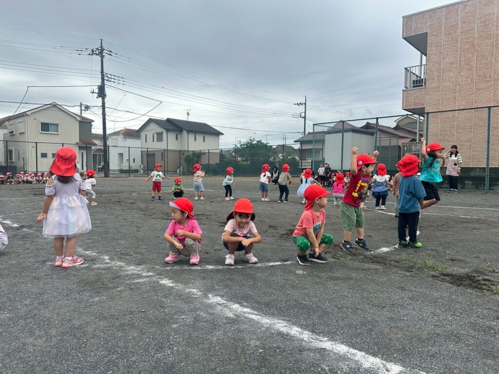 今年は例年にない暑さが9月になっても続き、外での活動が思うようにできませんでした。しかし先日、ようやく気温が下がり外で運動会の練習をする事ができました。広いグランドで走ったり踊ったり線の上を歩いたりと初めての経験が多かった子どもたちでしたが、一生懸命に練習に取り組む子どもたちの姿にかわいらしさと日々の成長が感じられるひと時でした。本番までまだ少しありますが、みんなが運動会に興味や関心を持ち楽しく練習をして当日を迎えられればいいなと思っています。担任も子どもたちと一緒に楽しんでいきたいです。