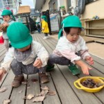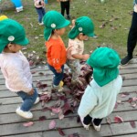落ち葉が子どもたちの遊びを広げていき、落ち葉集めをしたり砂場でのままごとにも活用され、秋の自然を満喫しています。