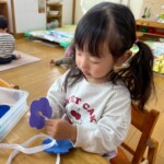 お部屋では紐通し等の指先を使う玩具でじっくりと集中して遊んだり、積み木でイメージした物を上手に表現できるようになってきました。