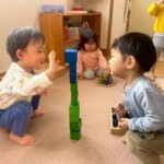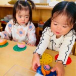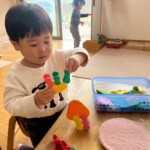 友だちと一つの遊びを一緒に行う姿も見られるようになってきています。「どうぞ」「ありがとう」と玩具の貸し借りをしたり、友だちに「すごいね!」と声を掛けたりし、簡単な言葉のやりとりも楽しんでいます😊