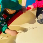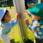芝生広場では影に気が付く子がおり、影遊びを楽しんでいます。