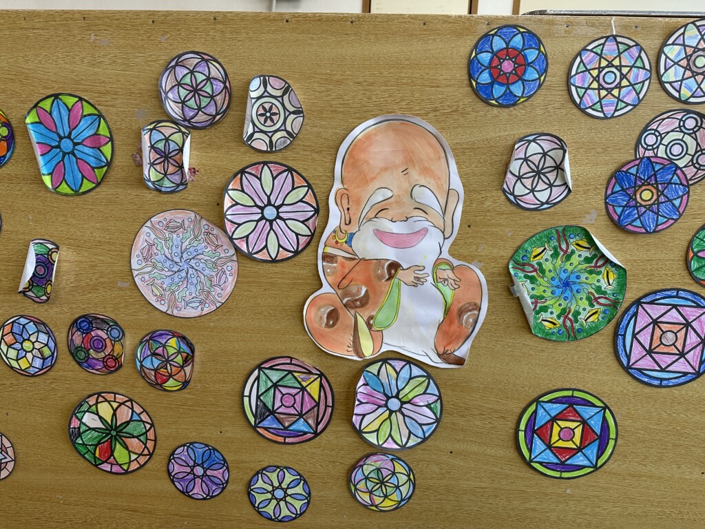 輪ゴムを外し、どんな柄ができているか・・・ドキドキ、ワクワク♪「丸が出来てる!!」「あじさいみたい!」「かんたのマントだ!」と大喜び♪マントをつけて散歩に行くことを楽しみにしていました♪