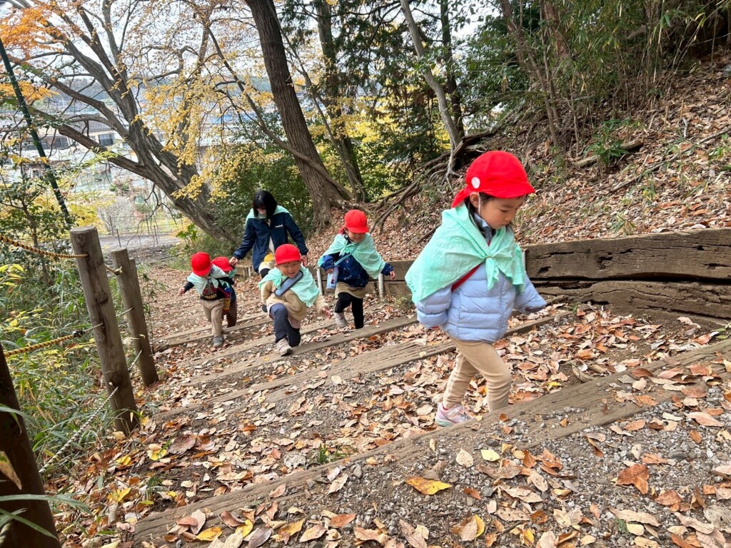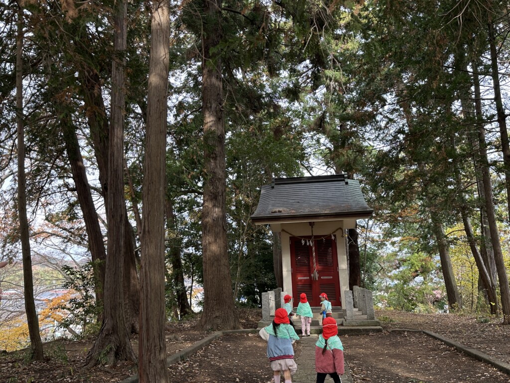 いつもの散歩道の景色も葉の色がすっかり変わり季節の変化を楽しみながら神社へ!「しっかかもっかかの声しなかった?」と会話も可愛らしくて、子どもたちのワクワクが伝わってきました♡