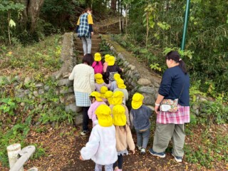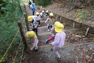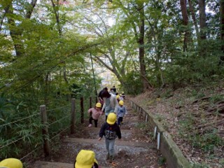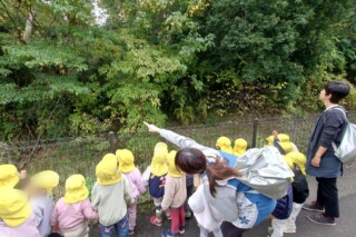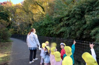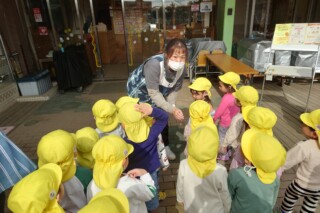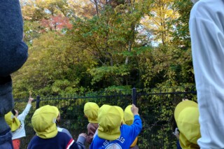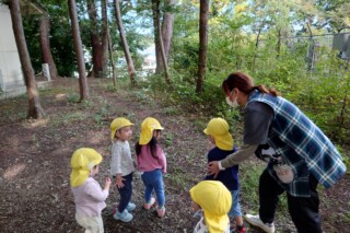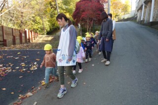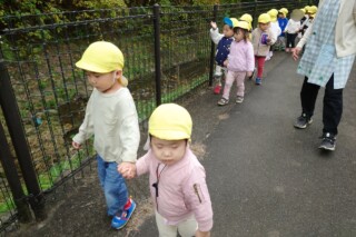 「保育園帰るよ。」と声を掛けると保育士のそばに集まり、一緒に歩いていた友達を探して手をつないで並びます。