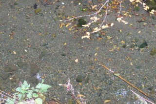 川をよく見ると、小さな魚を見つけて「いたー!」と喜んでいる子どもたちです♪