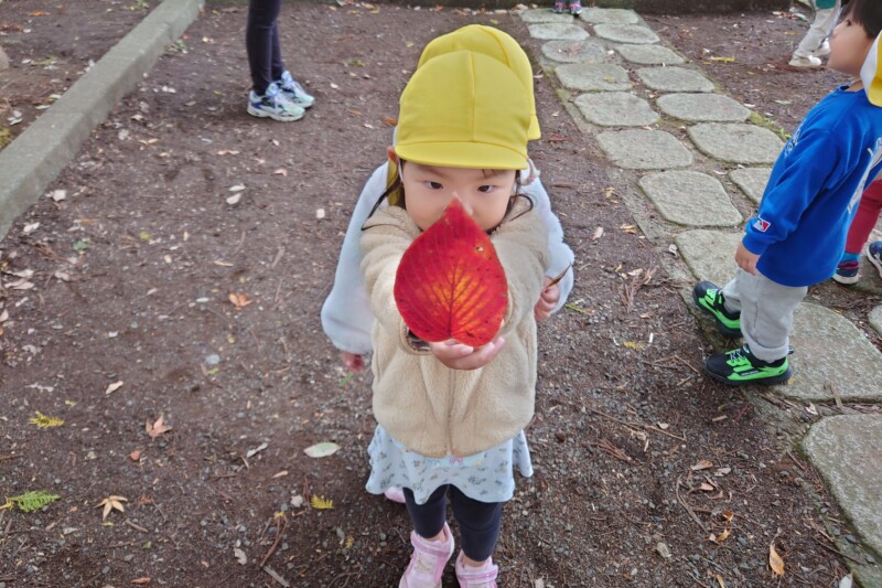 落ち葉やどんぐり、松の実を拾って「見てー♪」と嬉しそうに見せてくれました。