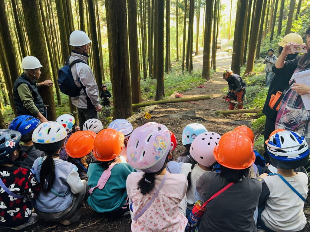 木育事業として 成木の森林散策や伐採見学、そしてノコギリ体験を行いました。