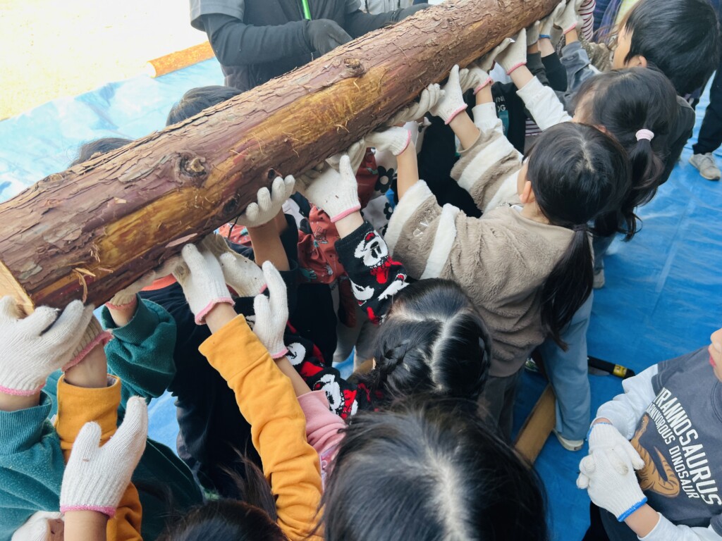 手伝いの内容は、「木を運ぶ」「ロープを引っ張り木を起こす」「土をかぶせる」ということでしたが、成木の森で体験した内容とほぼ一緒だったこともあり、行動が早くてとても上手でした🌳