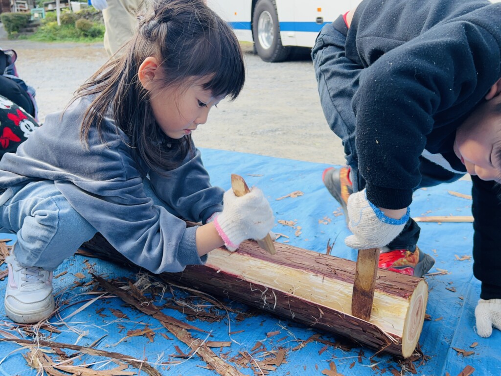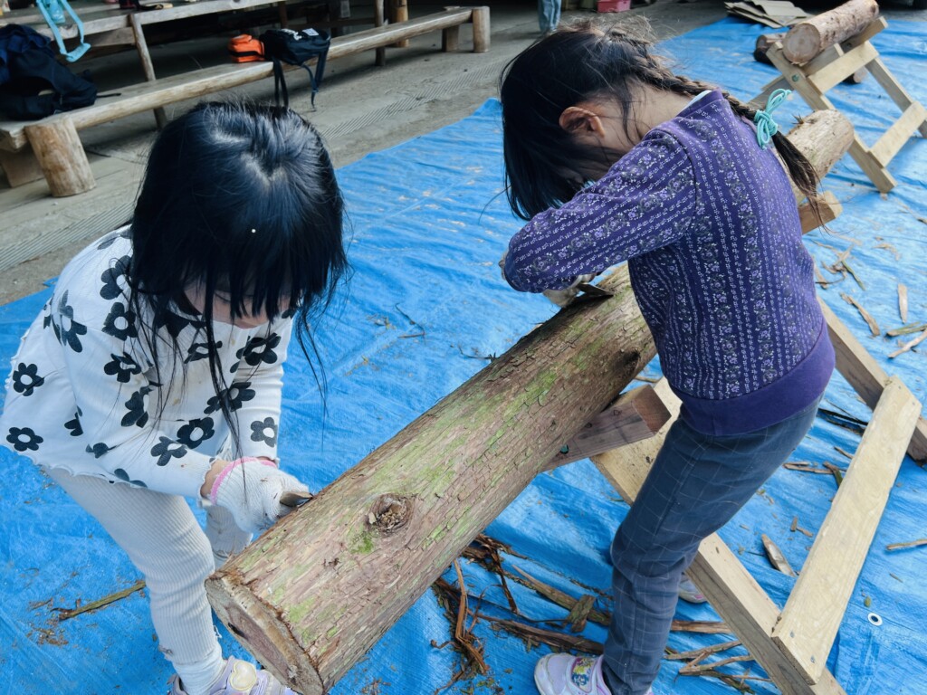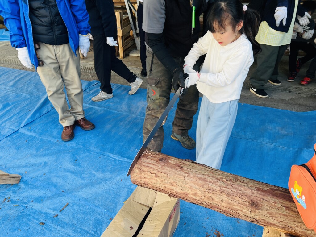 ノコギリ体験は現地スタッフが手助けしてくれたのですが、最終的には一人で挑戦する子もいて とても上手でした。