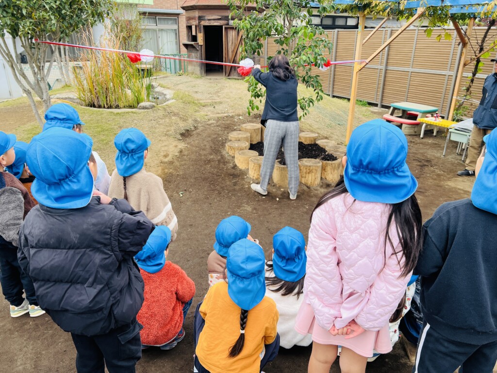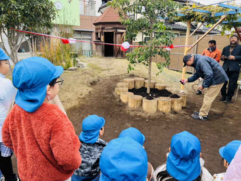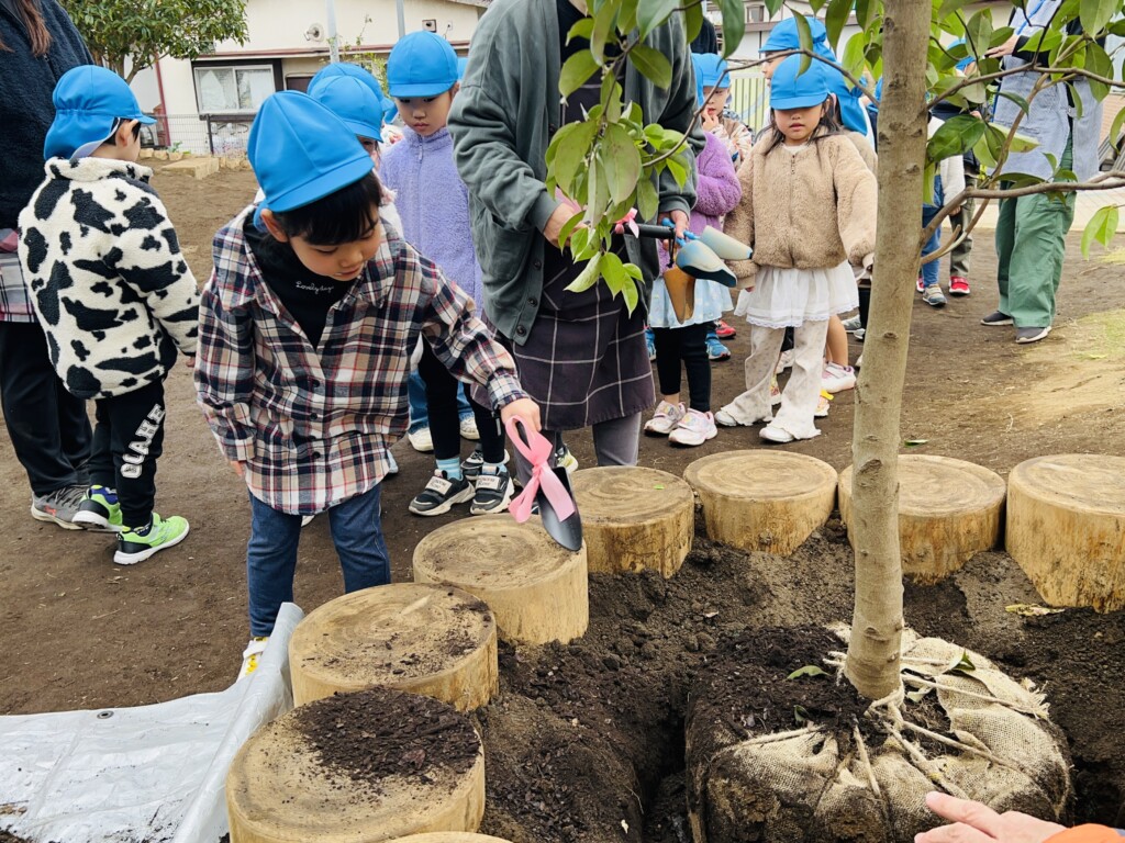 保育園代表として、ぞう組の皆でヤマボウシの木を植える手伝いをしました。