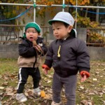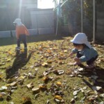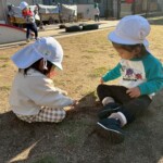 落ち葉を拾ったり、風で風車が回っていることに気付いたりと新しい発見を担任と一緒に楽しんでいます。