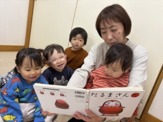 1月の絵本は“だるまさんが”の絵本です。みんな大好きな絵本で、嬉しそうに見ています。