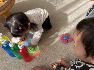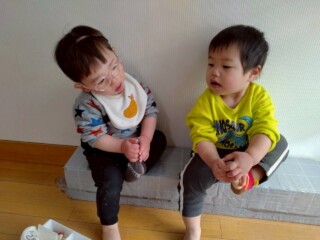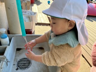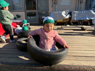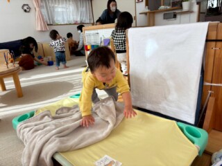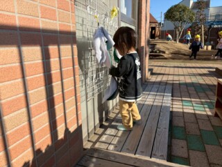 テラスでは、大人気な風車に手が届くようになりみんなでつかまり立ちをしてを伸ばして触れています。スロープや段差もハイハイで軽々上り下りできるようになりました。芝生広場に行ける日が待ち遠しいテラス組です♪