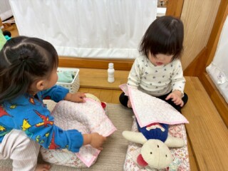 見立て遊びや表現遊びが上手になりました。そんな遊び方があるんだ!と保育士が教えてもらうこともあり、みんなの考えて遊ぶ力に感心しています。