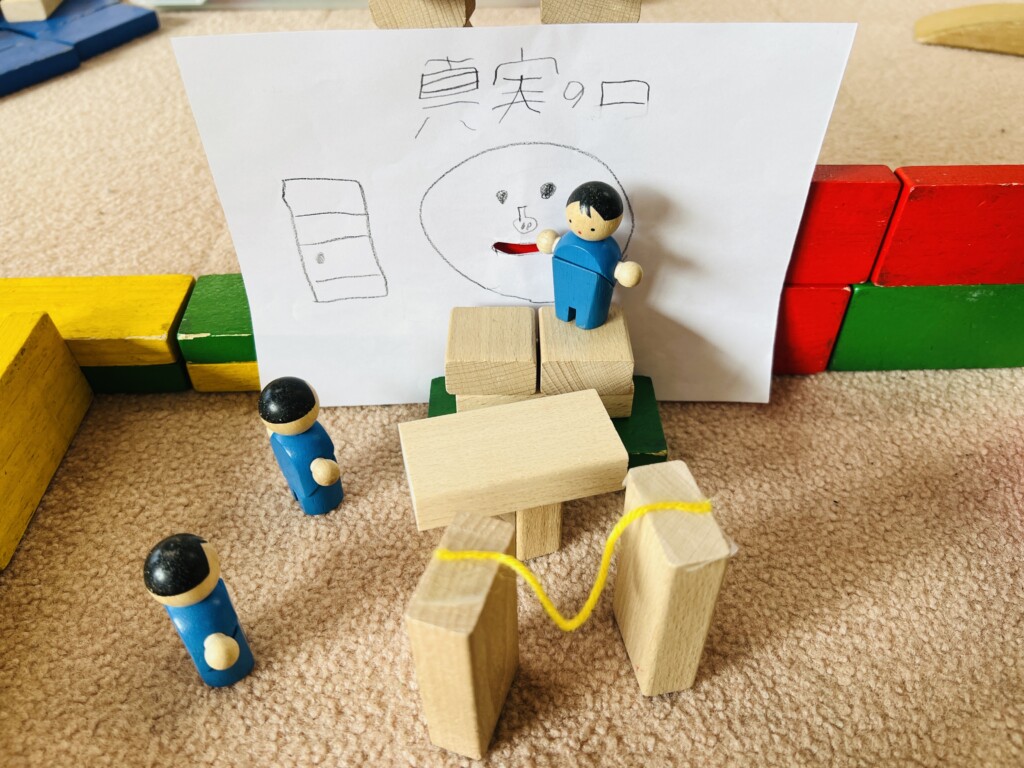 積木で「コロッセオ」や「真実の口」があるサンタ・マリア・イン・コスメディン教会を作ってみたりと、「イタリアコーナー」が完成してきています!