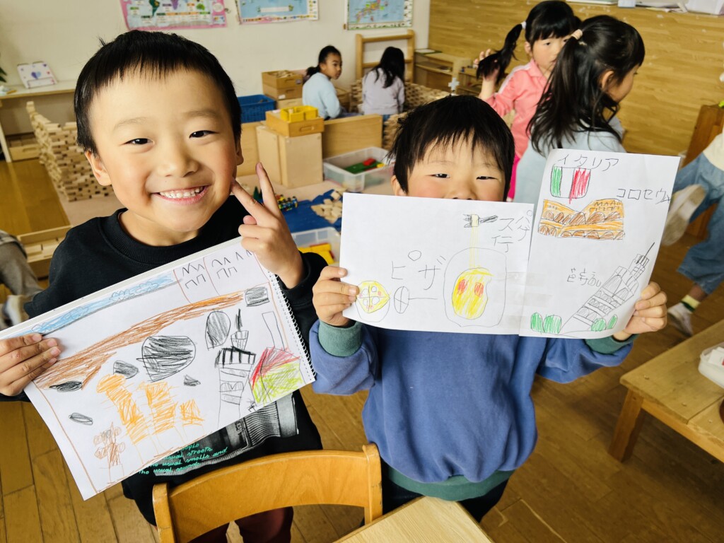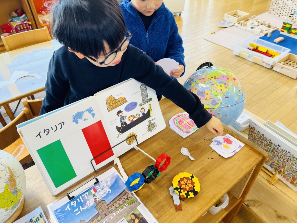 「こっきのえほん」にのっているイタリアのページを見て「ピサの斜塔っていうのもあるんだよ!」と友達や保育士に紹介してくれる子もいました😊