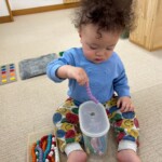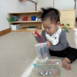指先を使った玩具も増やしましたが、新しい玩具にすぐに興味を示し、試行錯誤しながらじっくりと遊んでいます。