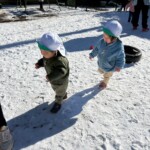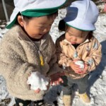「ゆき、ゆき。」と教えてくれたり、そーっと雪に触れて感触を楽しんだり、雪は冷たいという事にも気づき、皆嬉しそうな表情を見せていました。