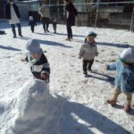 登園すると辺り一面真っ白になっていて、その光景を見たみんなの目がキラキラと輝いていました。