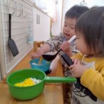 ひよこ組での生活も残り一ヶ月ですが、日々の成長を一緒に喜びながら、友だちや担任との関わりを深めていきたいと思います。