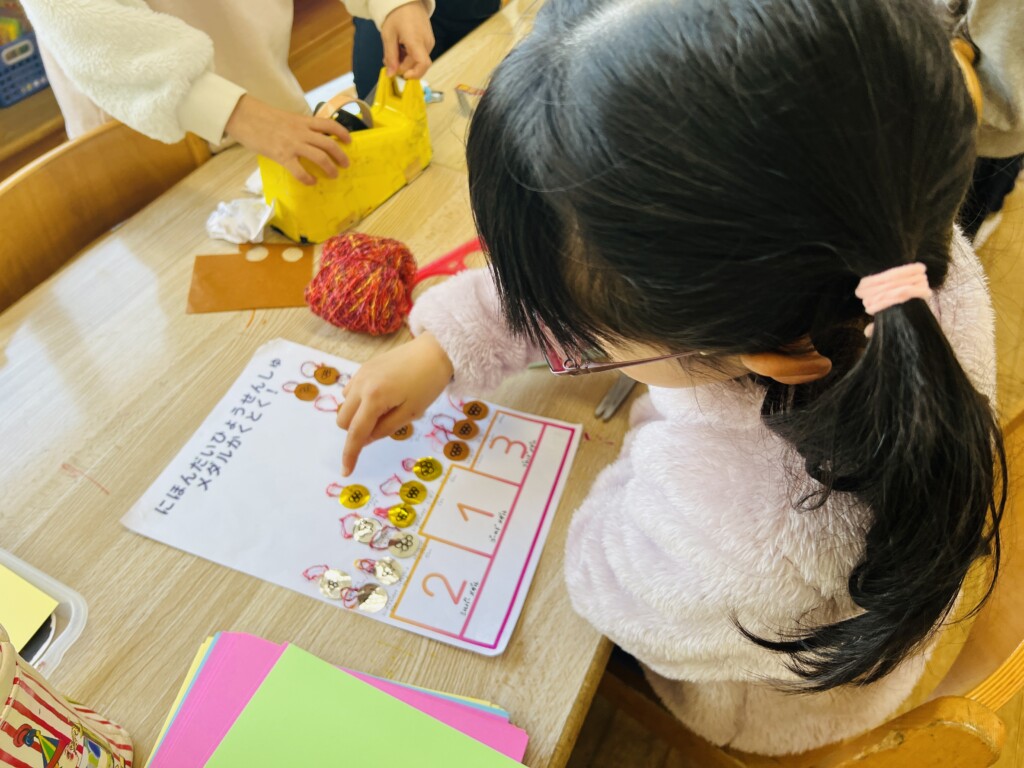 特に、日本人選手がメダルを獲得するたびに子ども達と作った手作りメダルで「何個獲得したのか数えてみよう」と数えるのが日課となり、オリンピック開催中とても盛り上がりました😊