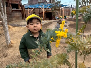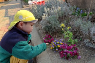 ミモザに水仙、ビオラにパンジーに菜の花と、花に興味津々の子どもたちです。